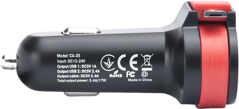 Автомобільний зарядний пристрій REAL-EL CA-35 (3USBx3.4A) BlackOrange + кабель microUSB (EL123160012)