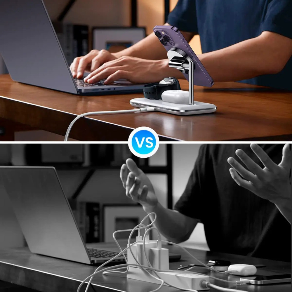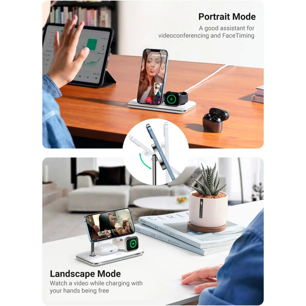 Бездротове зарядне — стенд Ugreen CD278 3-in-1 Wireless Charger (90326)