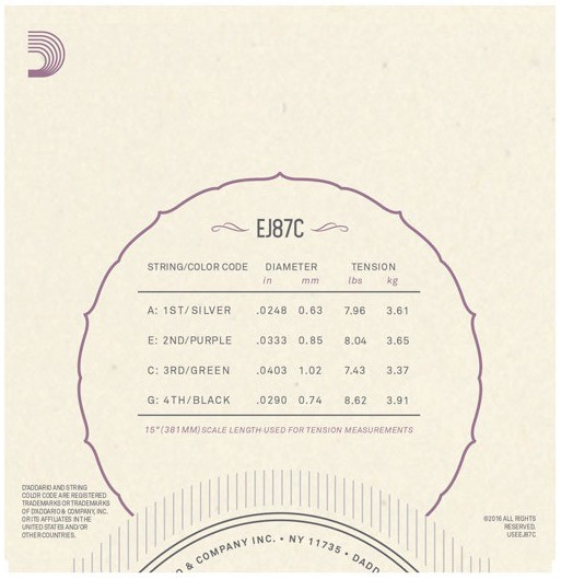 Диаметр струн - .025 .033 .040 .029 ",