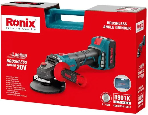 Кутова шліфувальна машина акумуляторна Ronix 8901K, болгарка 20В 4 Агод х 2