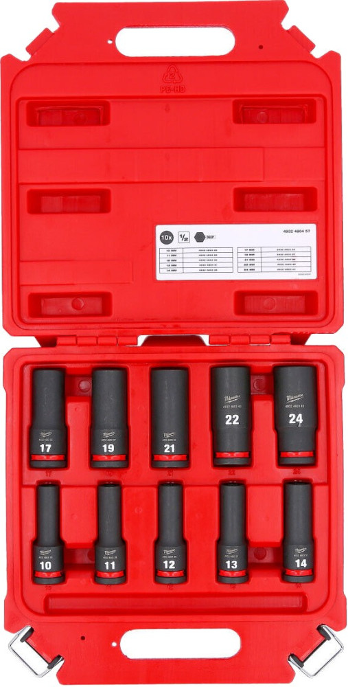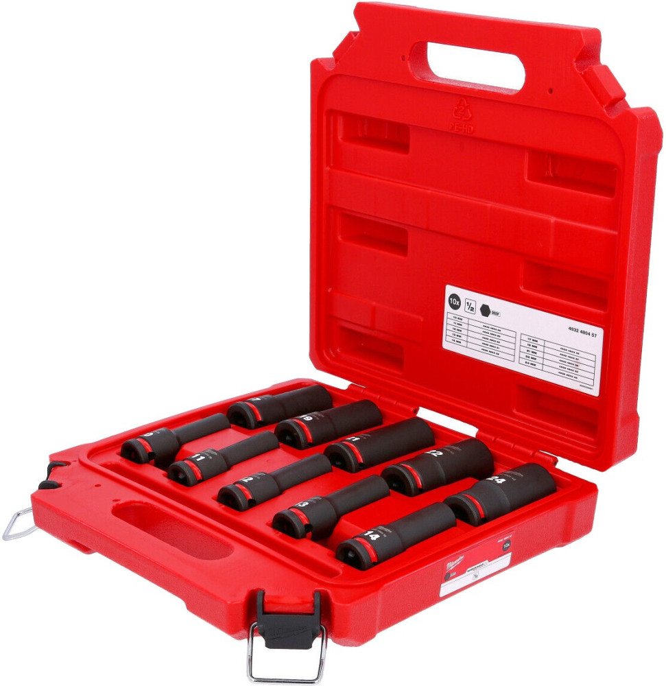 Milwaukee Набір торцевих головок, ударні, 12``, 10шт, 10-24мм, кейс (4932480457)