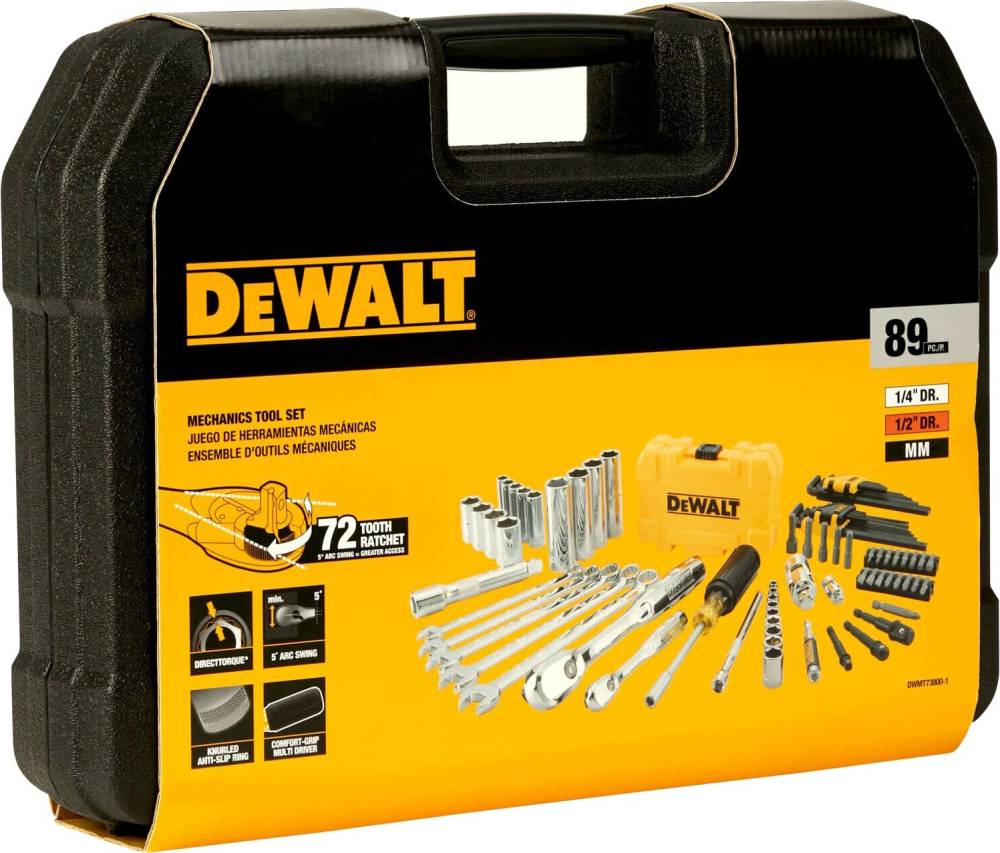 Набір головок, біт, шестигранних та накидних ключів DeWalt 14 та 38 89 предметів (DWMT73800-1)