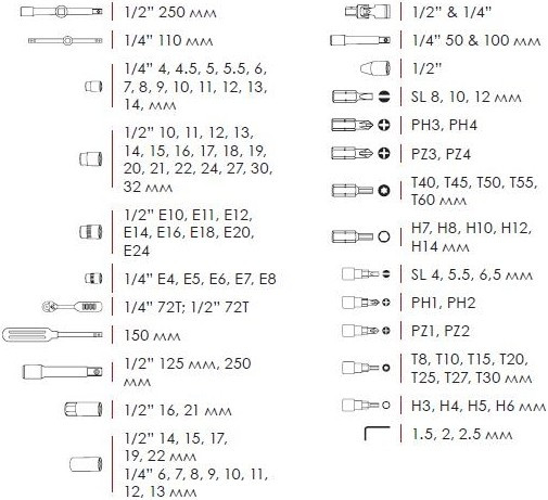 Торцевые головки (E-профиль) - 13 шт,