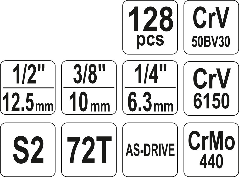 1/2, 1/4, 3/8 "