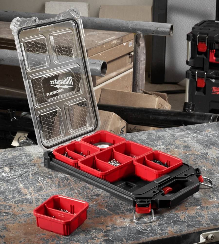 Ящик для инструментов Milwaukee органайзер компактный тонкий PACKOUT 250х380х65мм (4932471065)