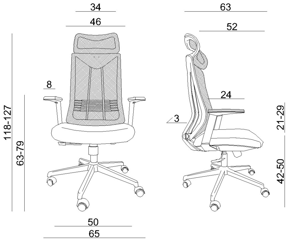 Высота подлокотника от сиденья - 29 см,