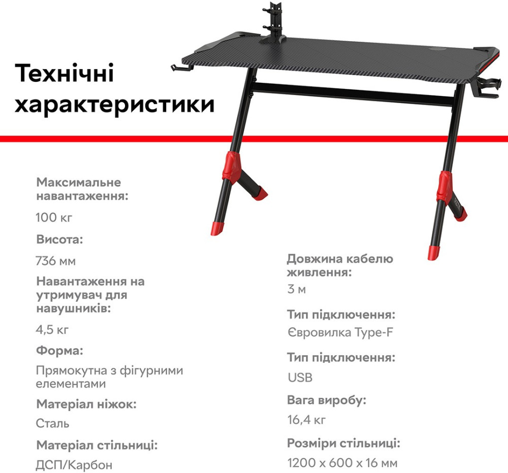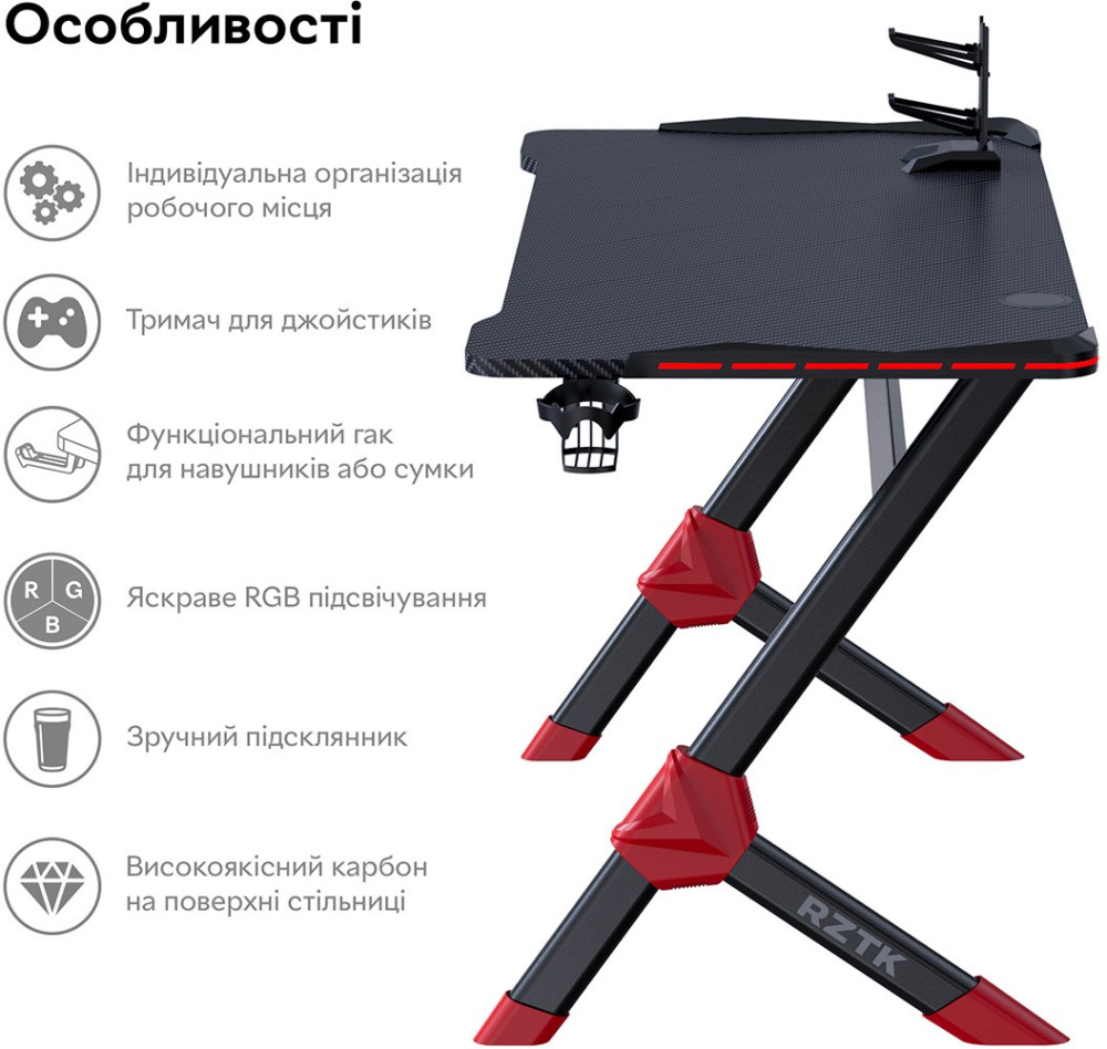 Офисный стол RZTK Cobra RGB Carbon