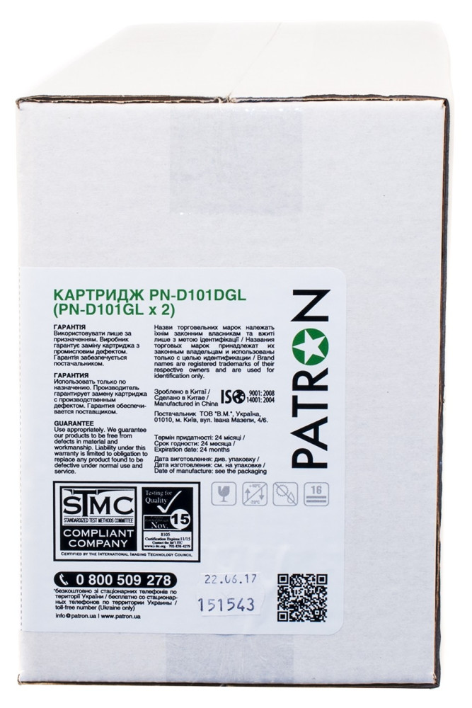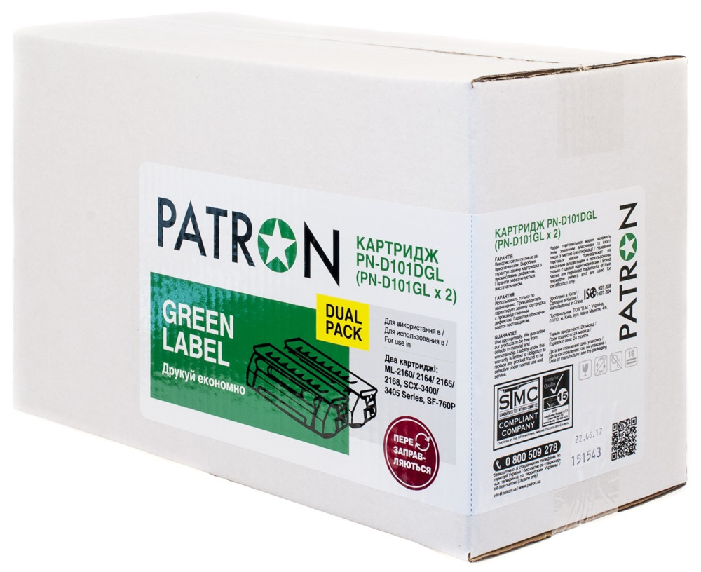 Картридж Patron SAMSUNG MLT-D101S (ML-2160) GREEN Label (DUAL PACK) (PN-D101DGL)