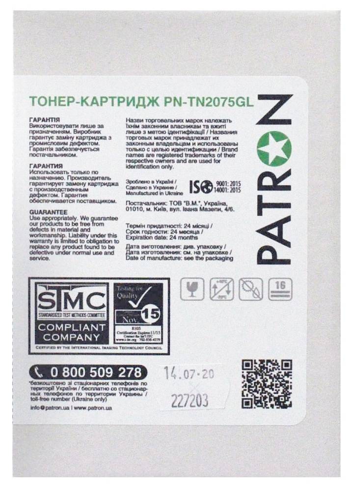 Картридж Patron PN-TN2075GL