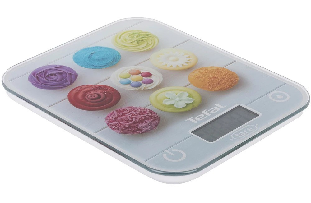 Ваги Tefal кухонні Optiss Cake Pops, 5кг, AAAx2 в комплекті, скло, різнокольорові (BC50D4V0)