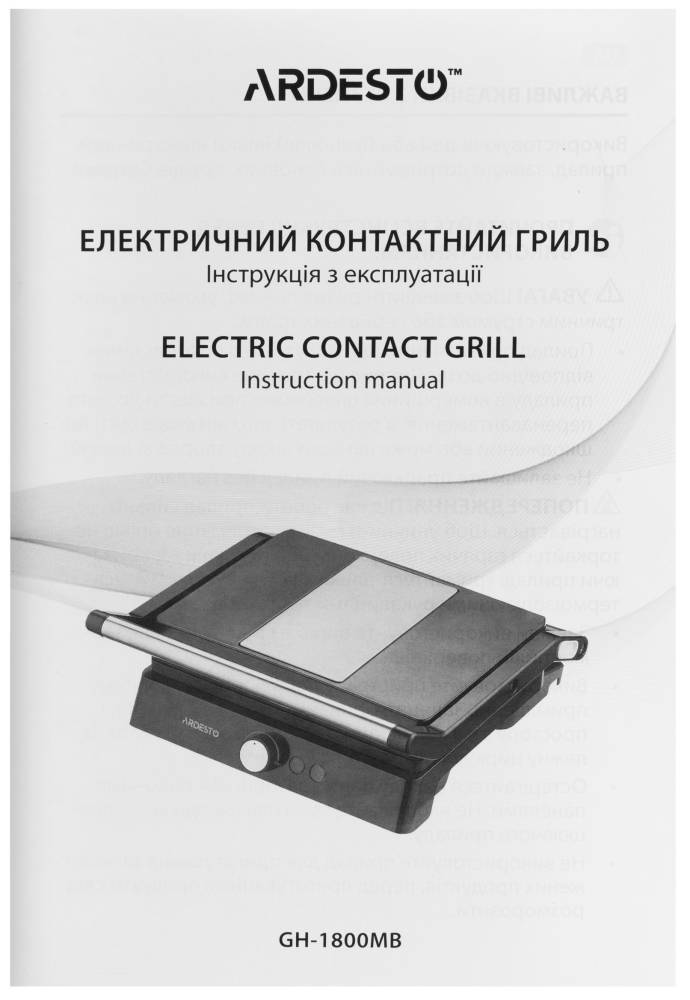 Контактный гриль Ardesto GH-1800MB