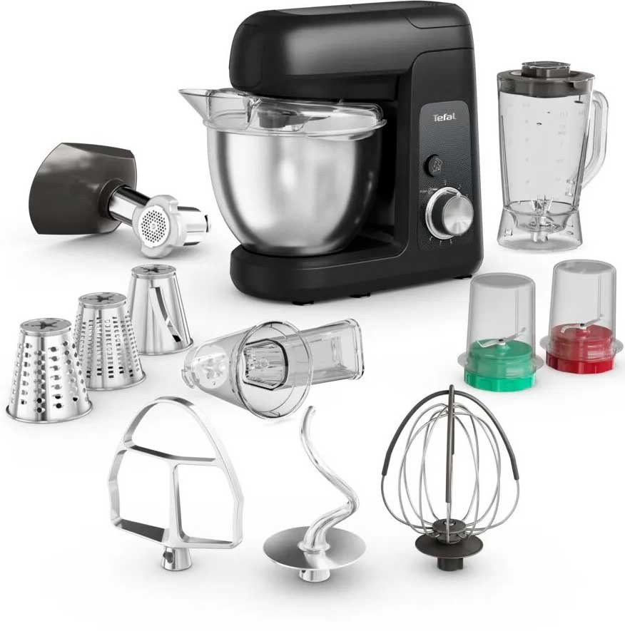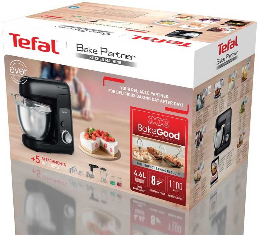 Tefal Кухонная машина Bake Partner 1100Вт, чаша-метал, корпус-пластик, насадок-8, чорний (QB525838)