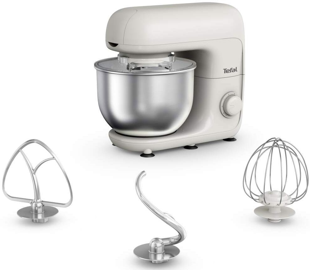 Tefal Міксер планетарний Bake Essential 800Вт, насадки-3, чаша-нерж., метал, 4.8л, білий (QB160138)