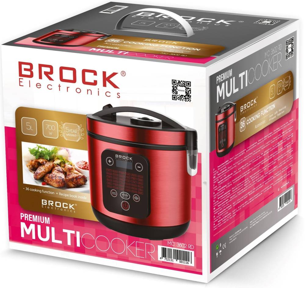 Мультиварка Brock MC 3602 RD, Red, 700W, 5л, керування сенсорне, 36 програм, автопідігрів, відкладень старт, керамічне покриття чаші