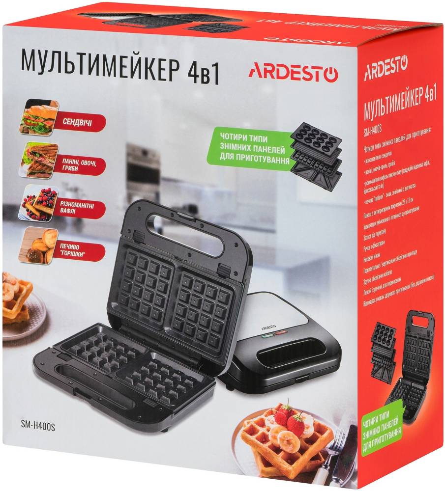 Мультімейкер (бутербродница-вафельница-гриль-Горішниця) Ardesto SM-H400S (NW08898)
