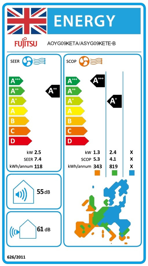 Энергоэффективность SCOP (обогрев) - A+,
