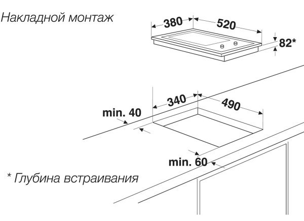 Размер для монтажа (ШхГ) - 340x490 мм,