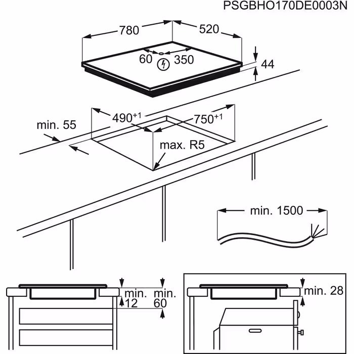 Размер для монтажа (ШхГ) - 750x490 мм,