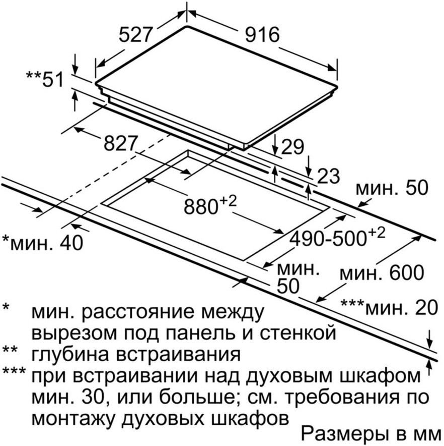 Размер для монтажа (ШхГ) - 880x490 мм,