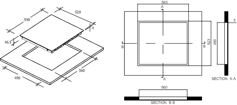Размер для монтажа (ШхГ) - 560х490 мм,