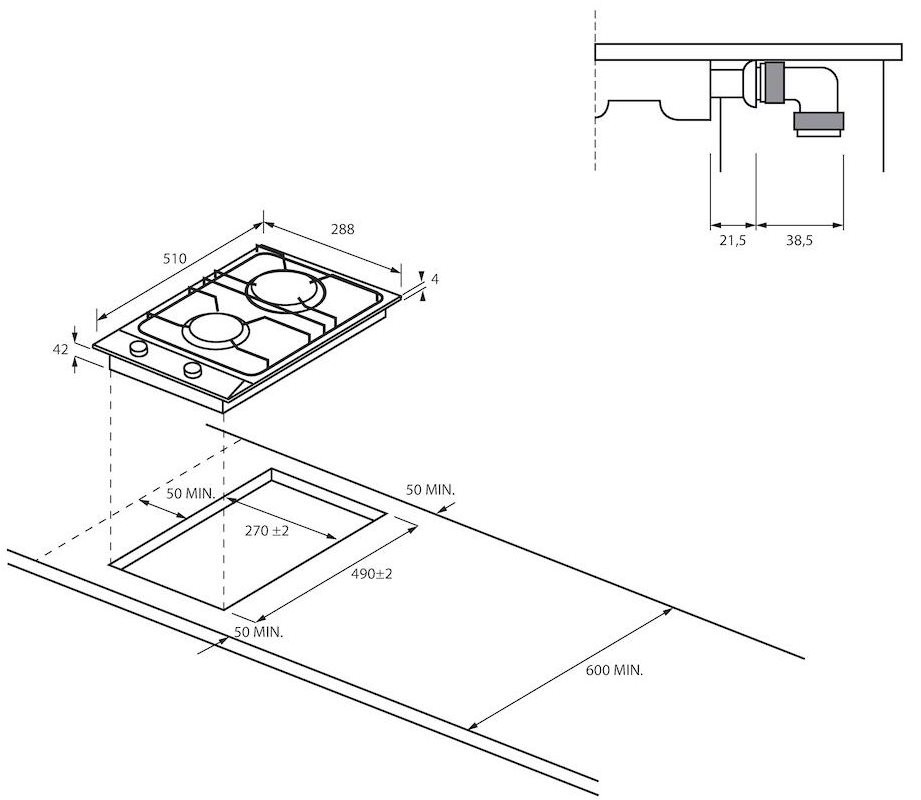 Размер для монтажа (ШхГ) - 270x490 мм,