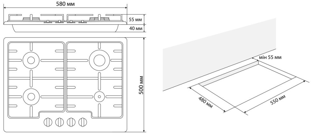 Размер для монтажа (ШхГ) - 550x480 мм,