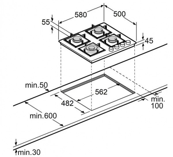 Размер для монтажа (ШхГ) - 562x482 мм,