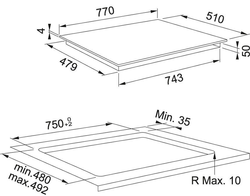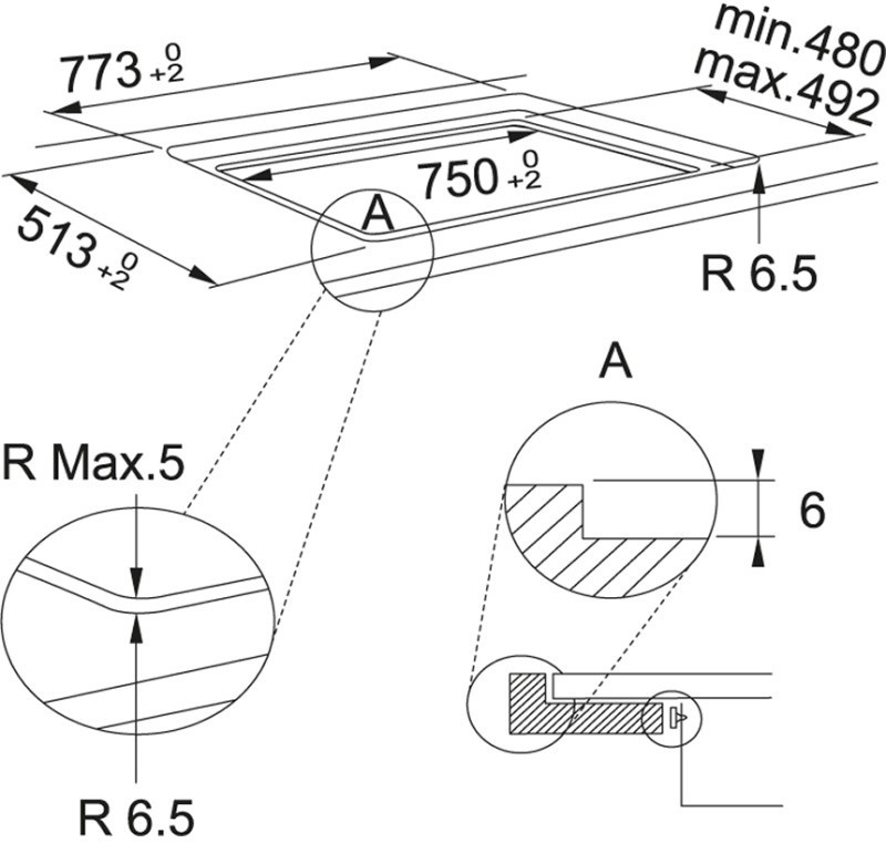 Размер для монтажа (ШхГ) - 750x480 мм,