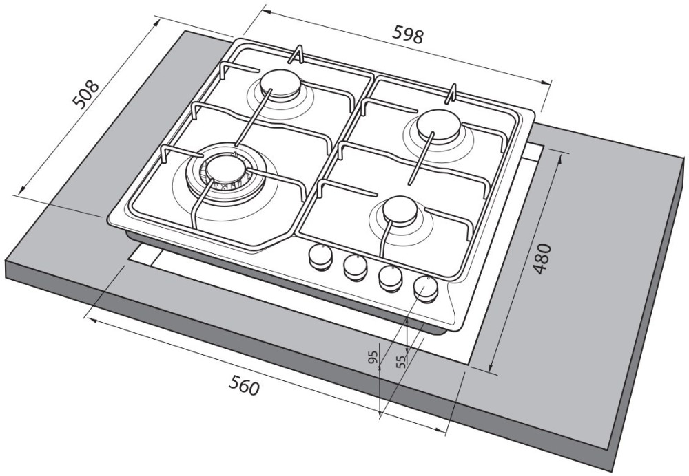 Размер для монтажа (ШхГ) - 560x490 мм,