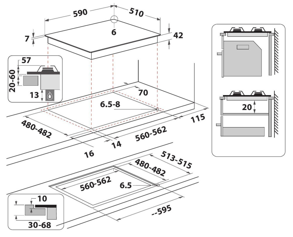 Размер для монтажа (ШхГ) - 560х480 мм,