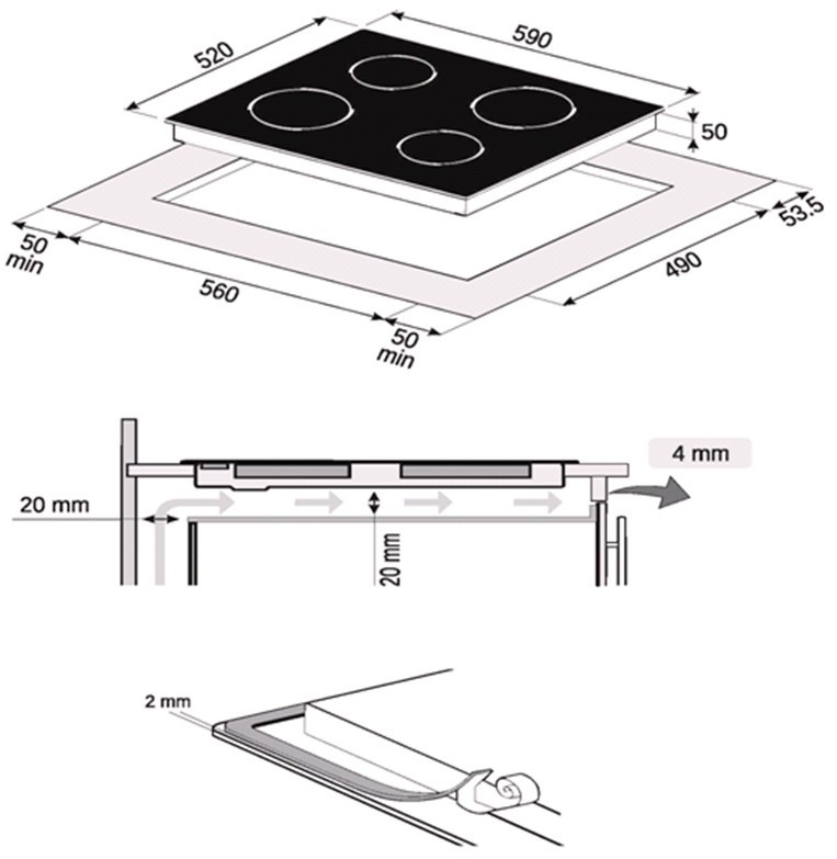 Размер для монтажа (ШхГ) - 560x490 мм,