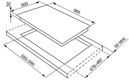Размер для монтажа (ШхГ) - 560x482 мм,