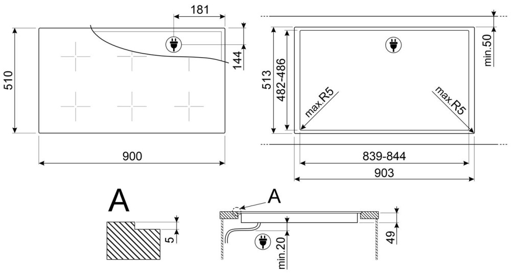 Размер для монтажа (ШхГ) - 839x482 мм,