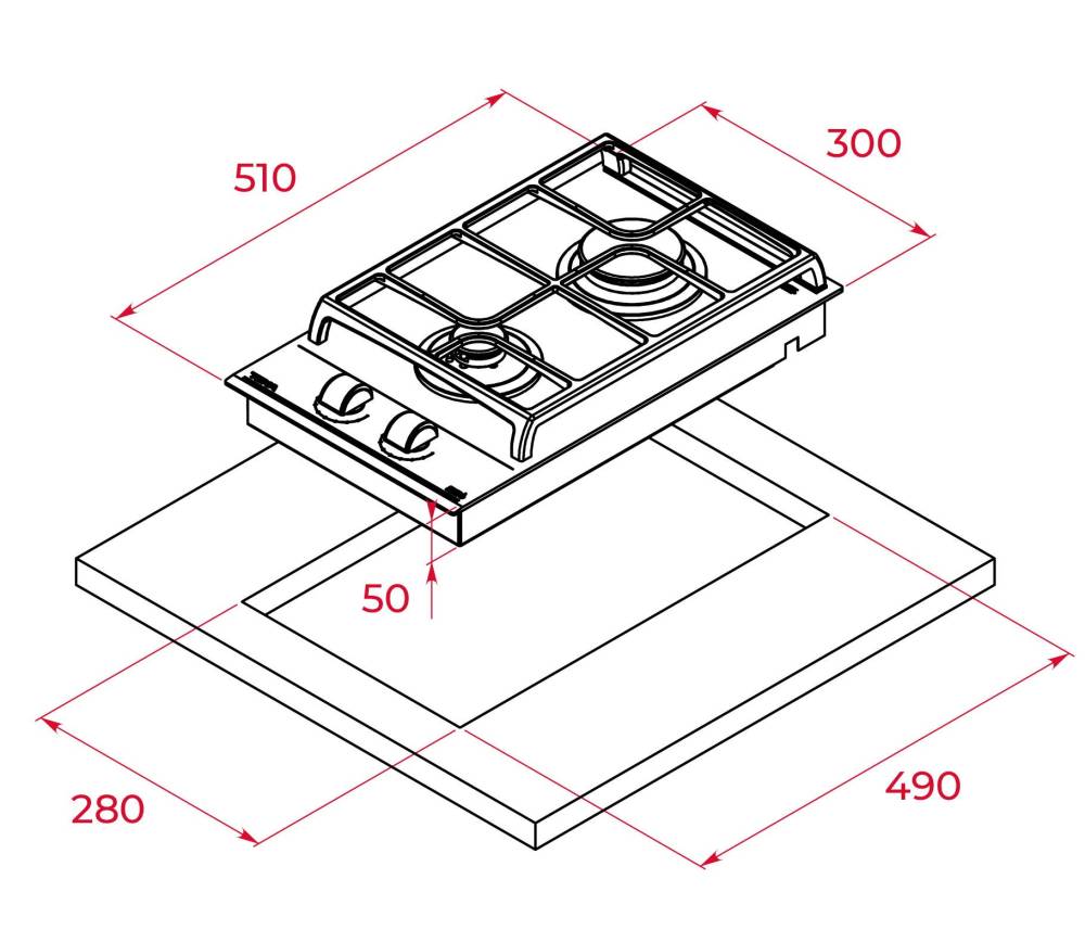 Размер для монтажа (ШхГ) - 280x490 мм,