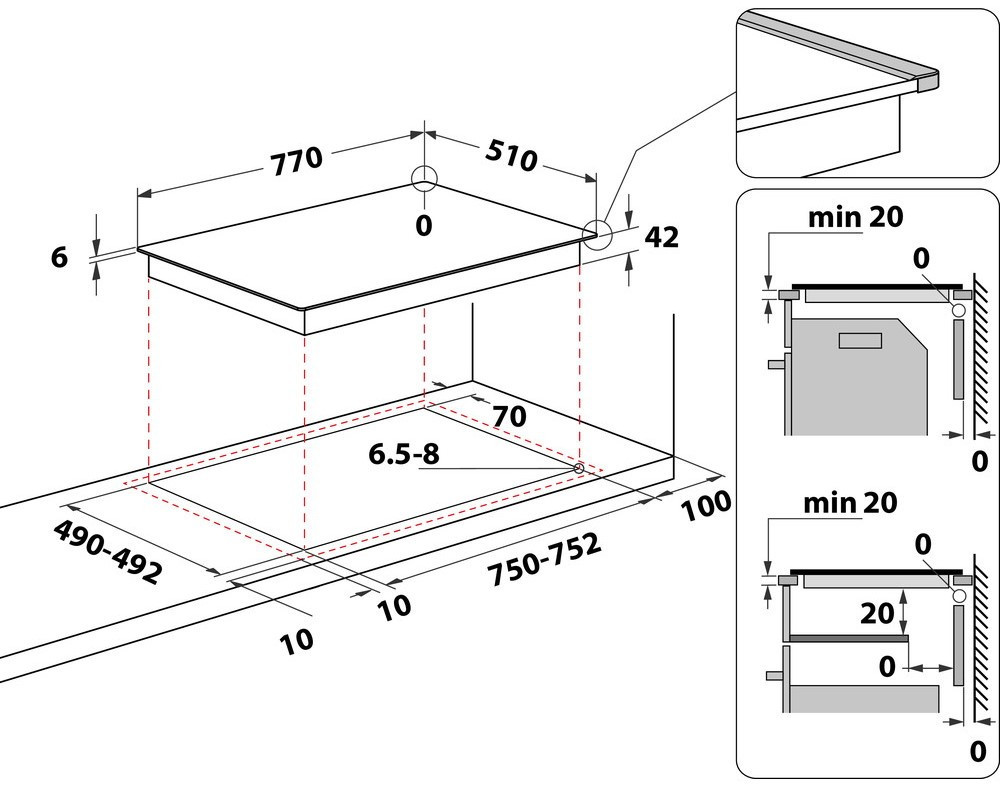 Размер для монтажа (ШхГ) - 750x490 мм,