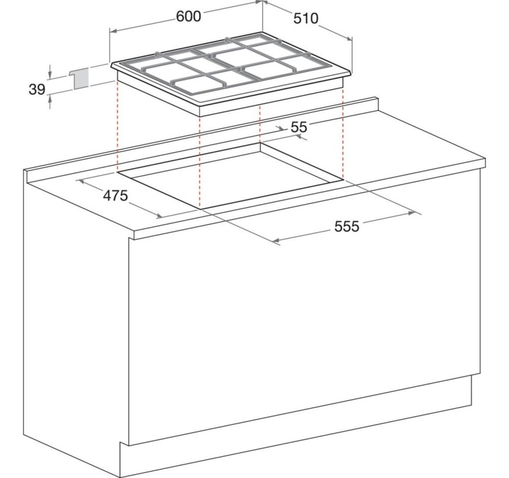 Размер для монтажа (ШхГ) - 555x475 мм,