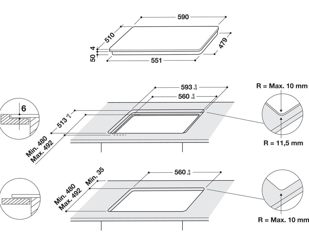 Размер для монтажа (ШхГ) - 560x480 мм,