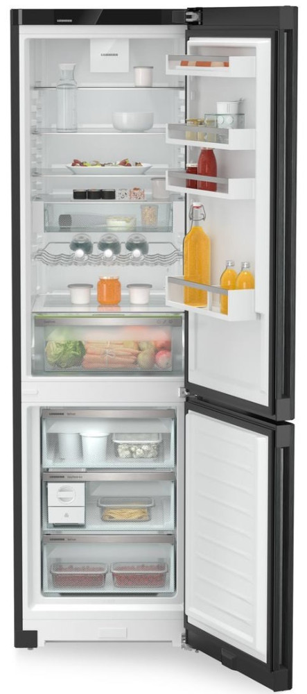 Холодильник Liebherr з нижн. мороз., 201.5x59.7х67.5, холод.відд.-266л, мороз.відд.-94л, 2дв., А+++, NF, диспл внутр., чорний