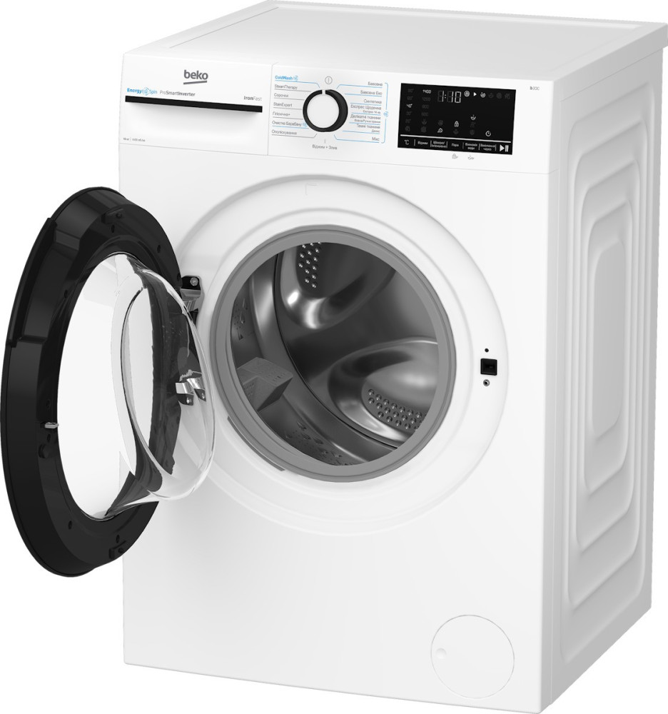 Beko Пральна машина фронтальна, 10кг, 1400, A+++, 58см, дисплей, інвертор, пара, білий (BM3WFU410435WB)