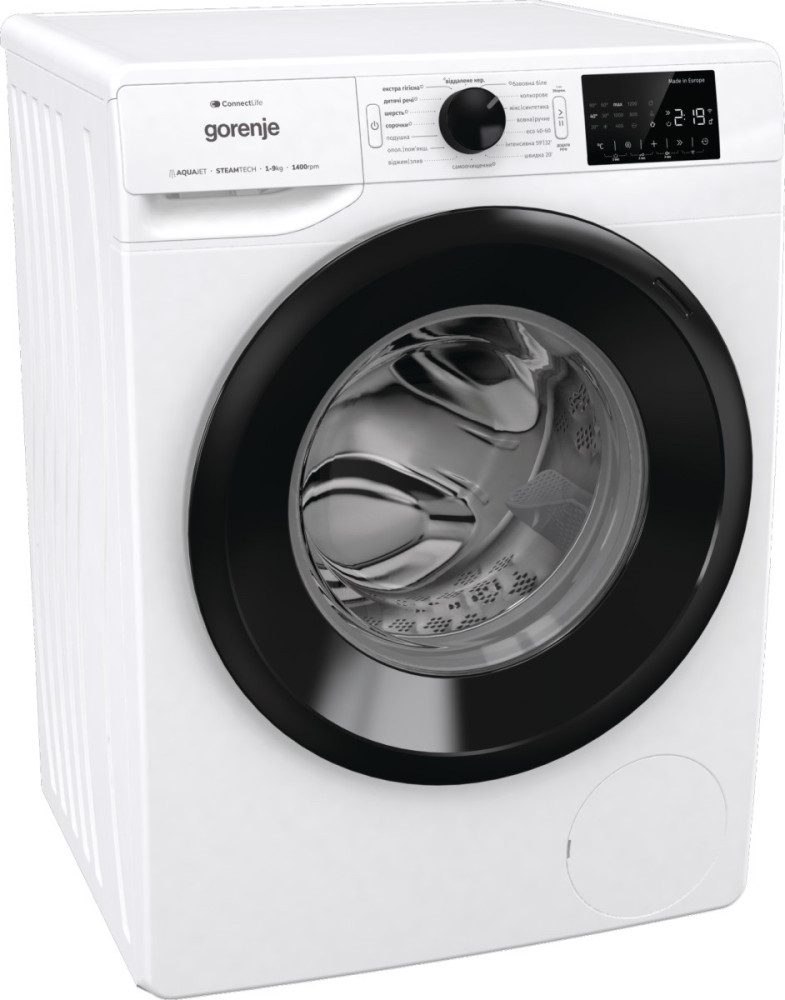 Gorenje Пральна машина фронтальна, 9кг, 1400, A+++, 54,5см, дисплей, інвертор, пара, Wi-Fi, білий (WPNEI94A1SWIFI)