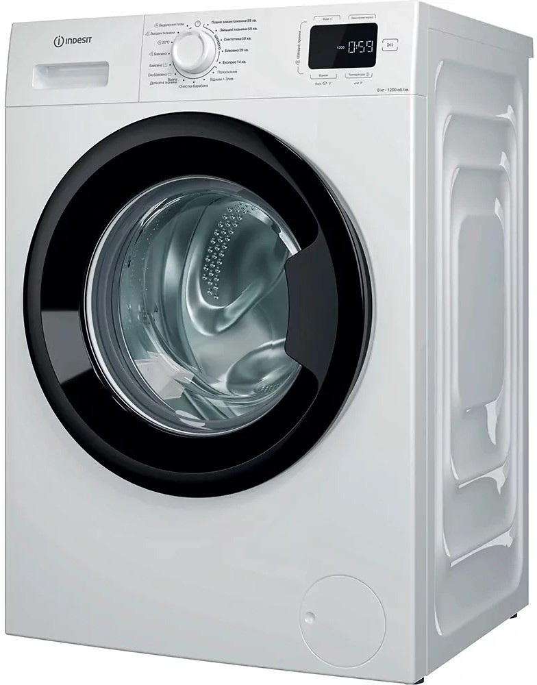 Indesit Пральна машина фронтальна, 8кг, 1200, A+++, 54.6см, дисплей, пара, інвертор, люк чорний, білий (IM812BMYTIMEUA)