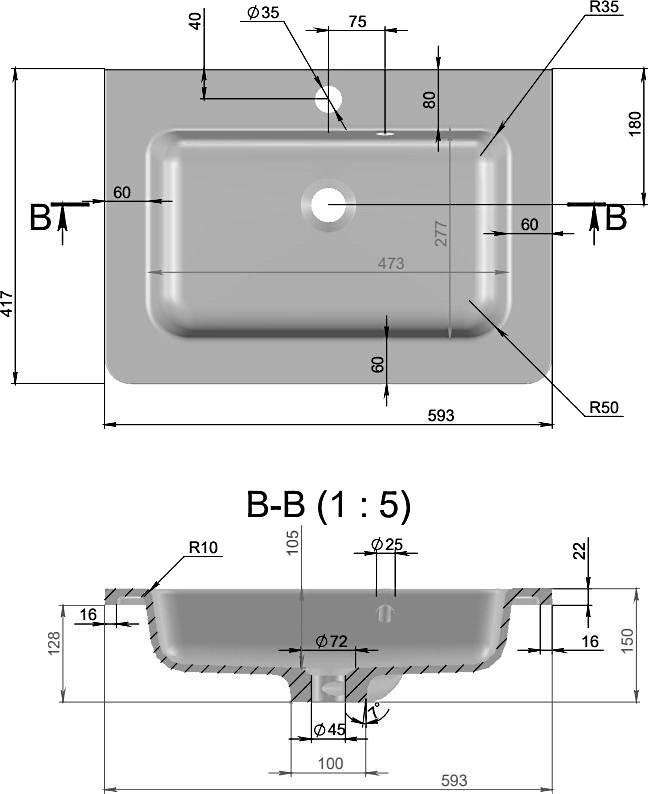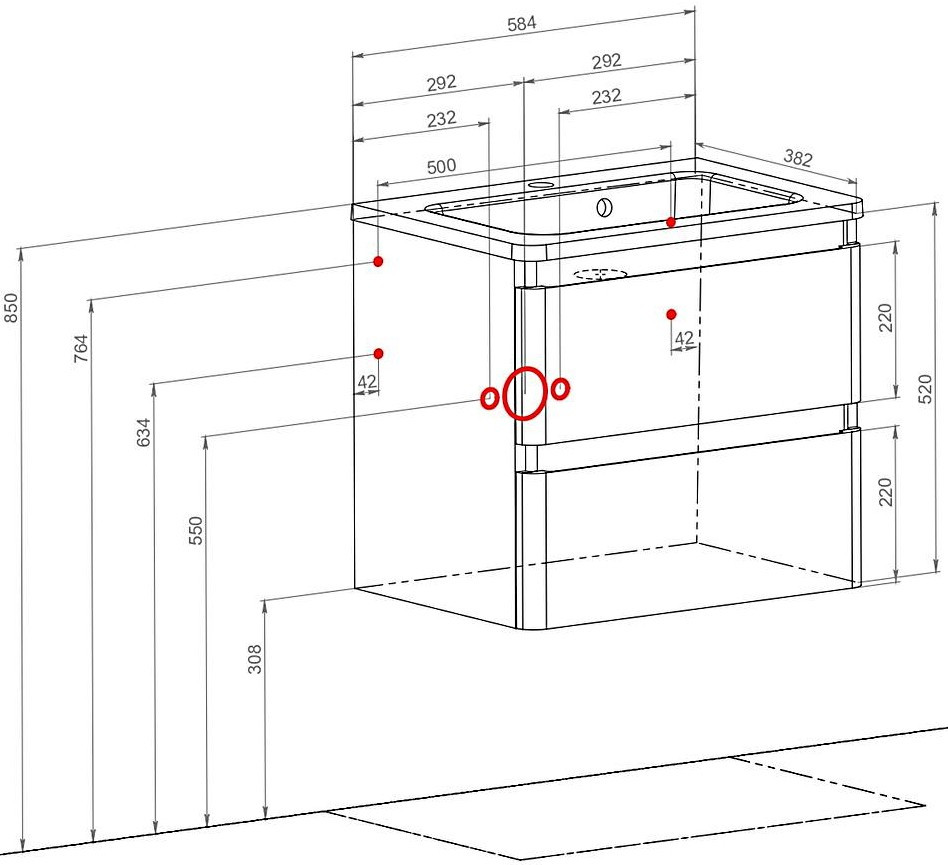 Расположение умывальника - по центру,