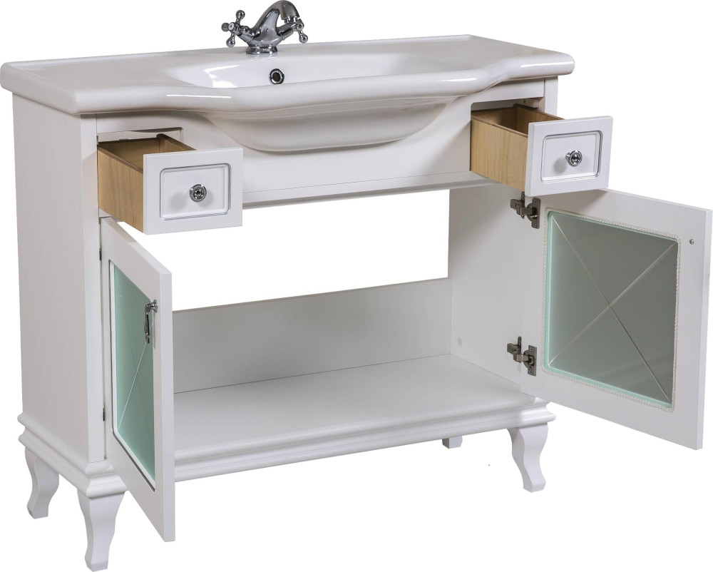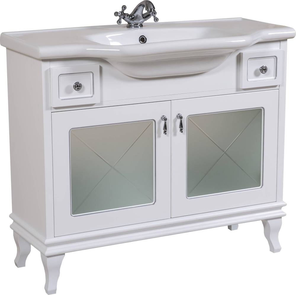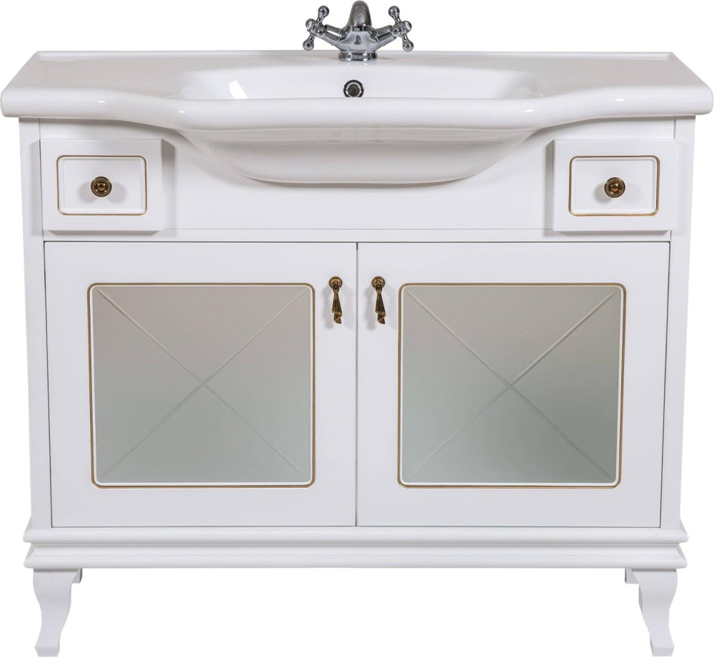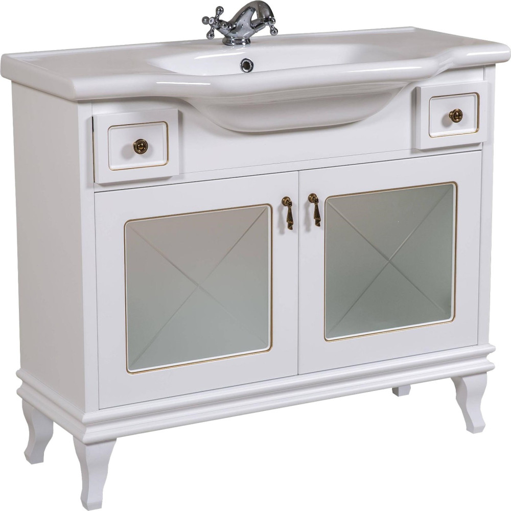 Тумба Аква Родос Беатріче Люкс 100 см білий патина хром з умивальником Нью Класик АР000040193