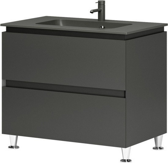 Тумба підлогова Aquarius Loretto 100 графіт матовий 70942868 з раковиною Plaza