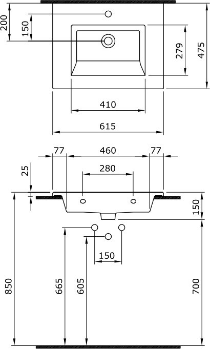 Расположение умывальника - по центру,