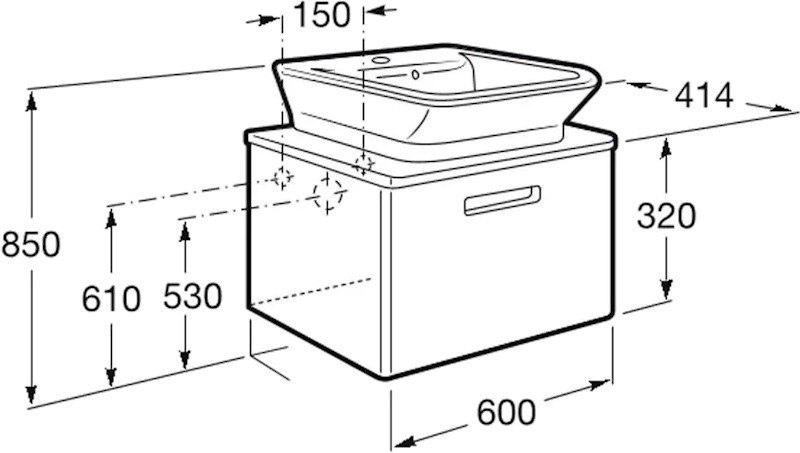 Расположение умывальника - по центру,