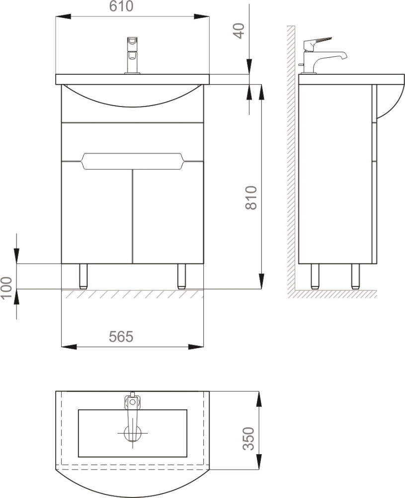 Расположение умывальника - по центру,