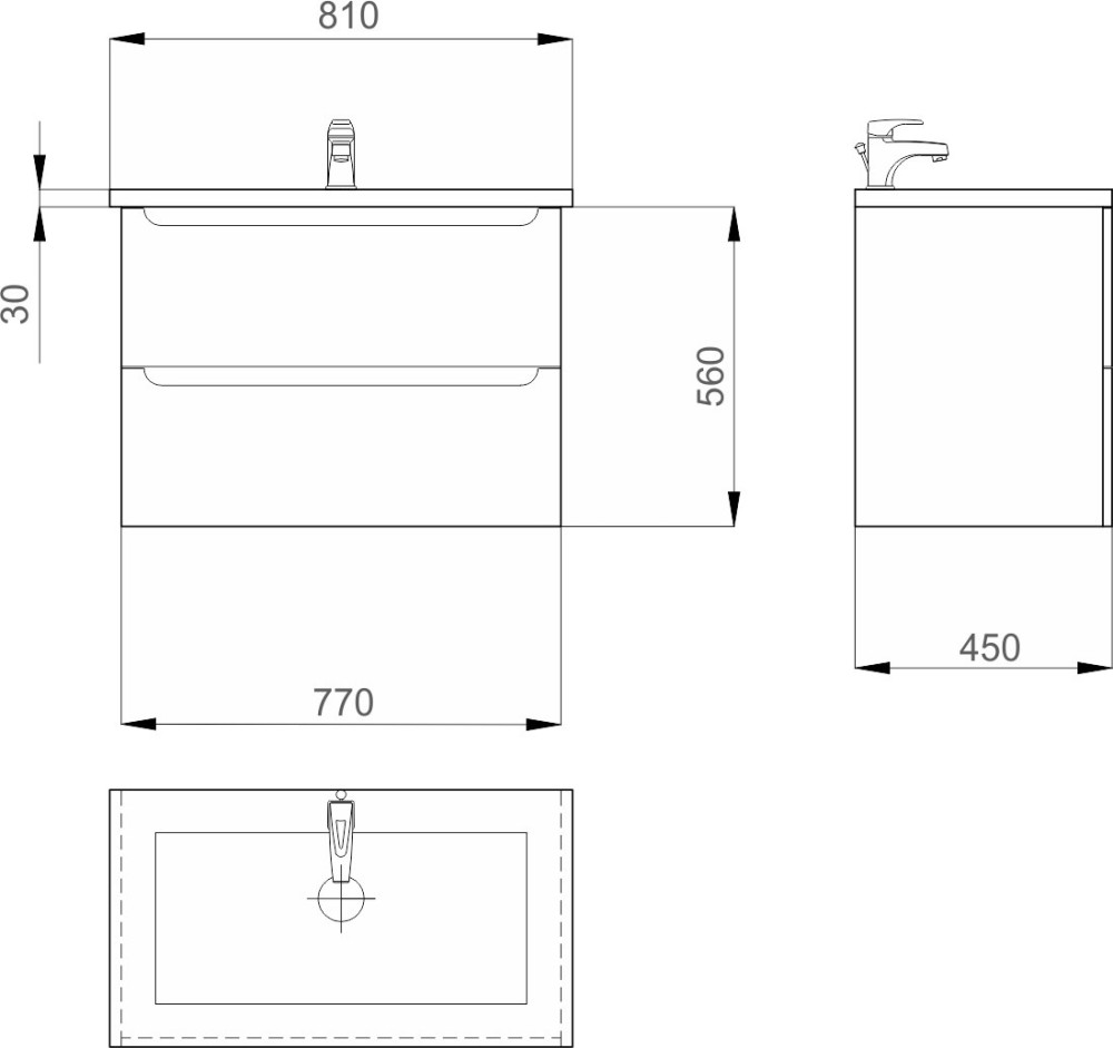 Расположение умывальника - по центру,