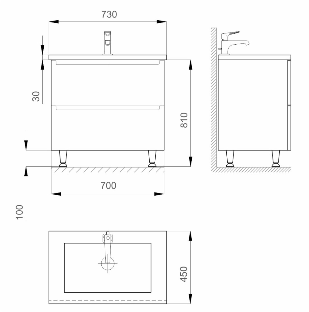 Расположение умывальника - по центру,