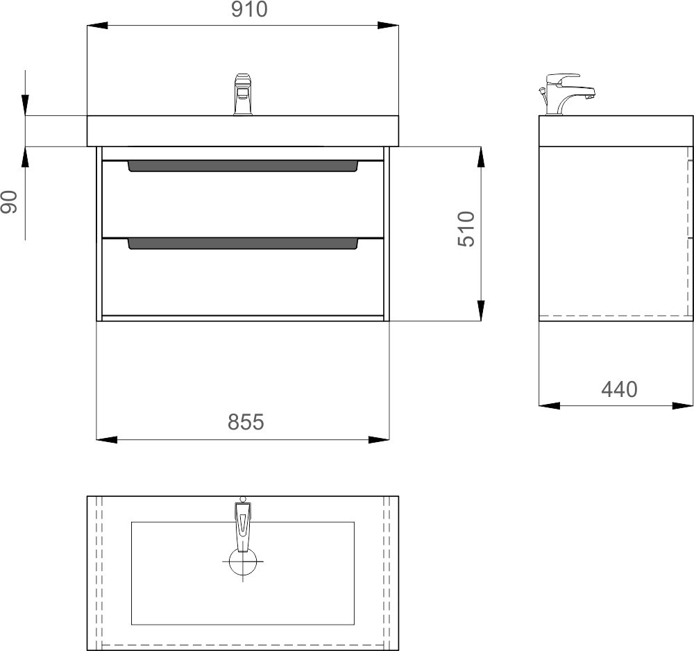 Расположение умывальника - по центру,